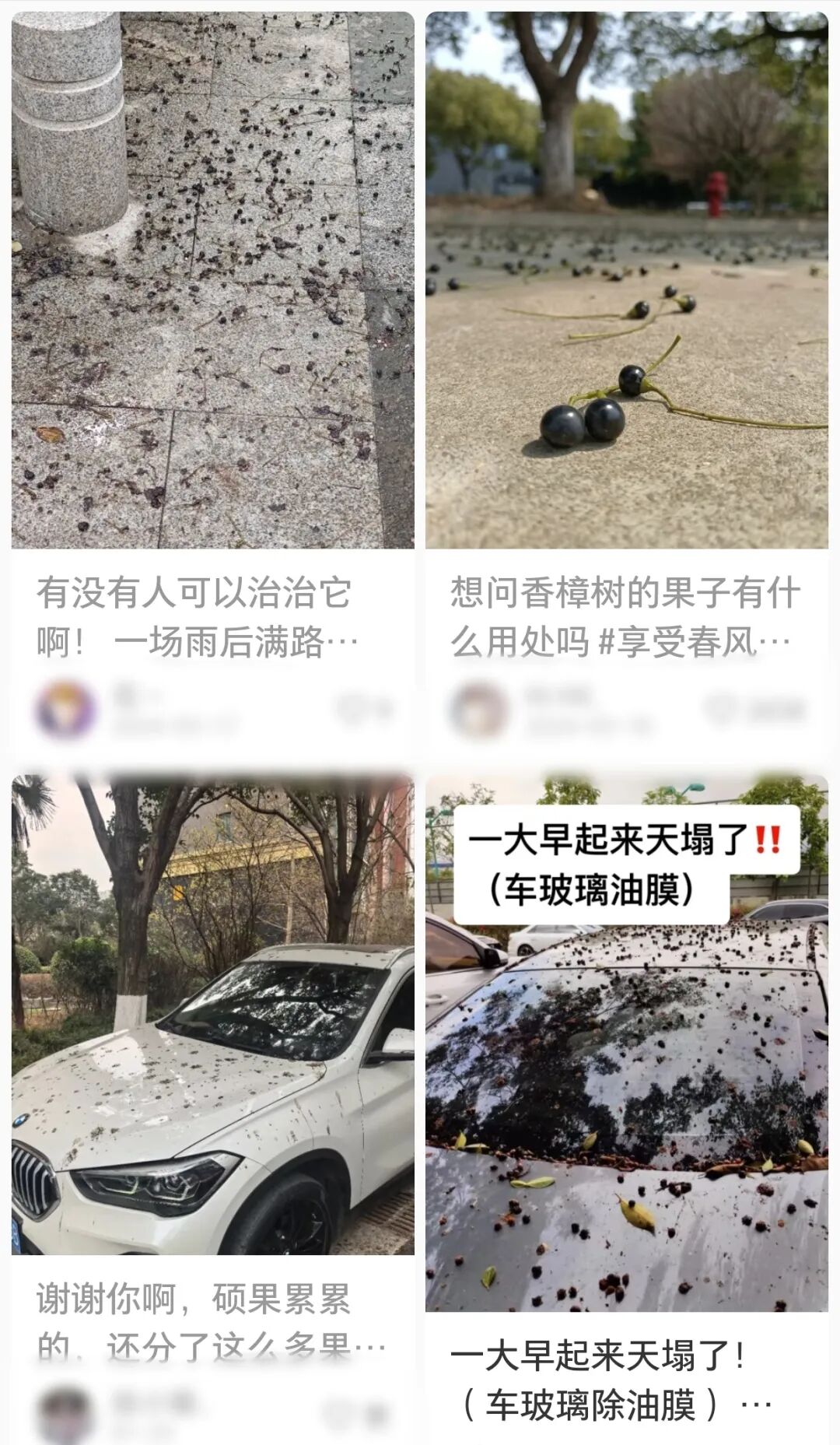 每年3—4月,香樟树会落籽,这一过程持续一到两个月。