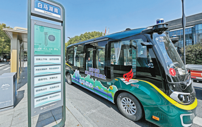 近日,三辆自动驾驶的小型巴士在滨江白马湖区域投入运营,乘客不用刷卡、无需投币,就可免费乘坐。运营的自动驾驶小巴士拥有360度无死角的感知能力,自主避障、识别红绿灯、应对加塞等一系列操作游刃有余,每车还配备1名安全员,关注和处理紧急状况,保障乘客乘车安全。