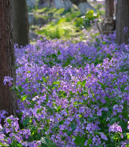 想快速看到最壮观的二月兰,建议直接从“郭庄”入口进。 这片最美的花海就开在茅家埠景区靠近郭庄的那一侧,从这边进能让你在最短的时间内邂逅最梦幻的景色。