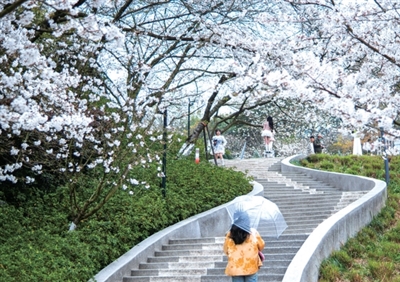 少儿公园的这些樱花早在建园时就已栽植,树龄最大的已有30多岁。公园里整洁干净的阶梯、错落有致的樱花群,以及不远处专属于游乐园的缤纷,构成了专属于杭州人的春日限定版“粉色童话”。