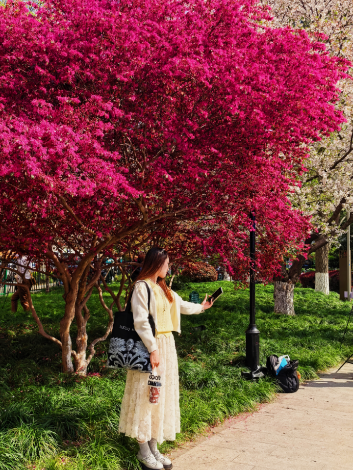 当前正值晚樱、红花檵木、鸡爪槭最佳观赏期,景观可持续至4月上旬,错过需等一整年 。
