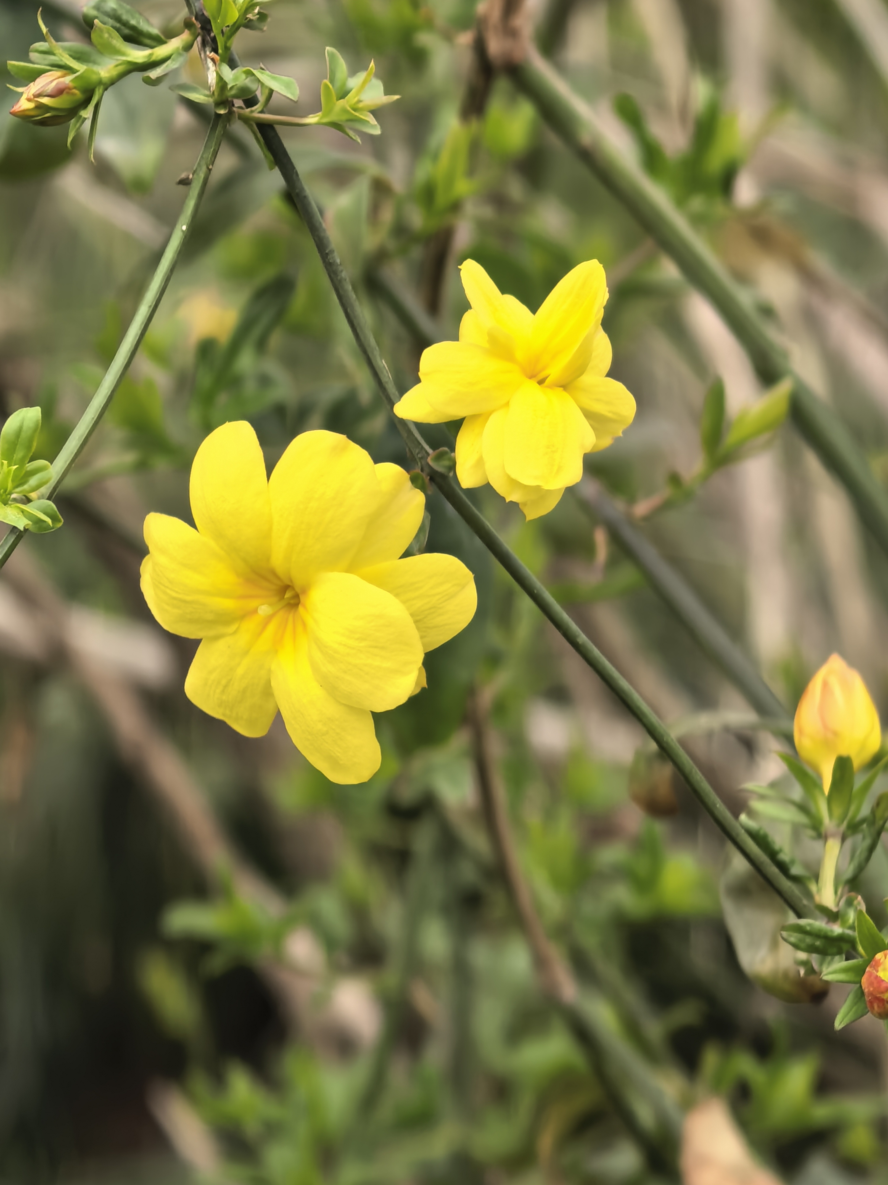 植物的花色主要由花瓣中的色素决定,色素主要包括类胡萝卜素、花青素、叶绿素等。类胡萝卜素让花朵呈现黄色或橙色,它的合成路径相对简单,只需利用之前积累的养分就能合成。同时,类胡萝卜素在低温等不良环境下相对比较稳定,不会轻易受到环境变化的影响,而其他色素则容易受到气温等因素的影响。黄色花是早春相对比较稳定的花色。早春植物刚结束休眠,新叶还没有萌发,还不能进行光合作用来积累能量,体内的能量和营养储备都很有限。早春开出黄色花,能用较低的投入来换取较大的回报,因此是相对节能的一种生存机制。在能量紧缺的早春,少耗能、早开花,才能更好地存活下来,这是植物务实的生存策略。