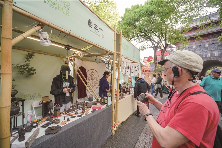 昨天上午,一场以“香”为主题的春日雅集——“春序香市”在清河坊历史街区鼓楼小广场上开启。香市为期三天,联动街区内17家老字号与特色文化空间,现场以南宋画家马远的《竹涧焚香图》为灵感,搭建了一片古韵十足的清幽竹林,铺陈香席,汇集药香、茶香、脂粉香等各种香源,推出打香篆、做香囊、制艾条等免费体验课程和传统香道、中医艾灸、精油疗愈等雅集活动,再现了南宋时期坊巷间的百香氤氲和宋人日常生活的仪式感。