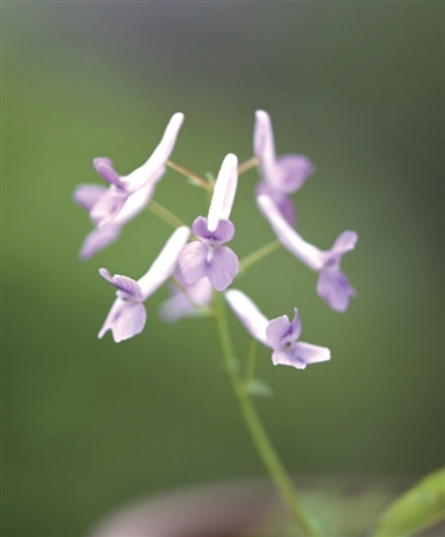 刻叶紫堇紫色的小花串成了串,像一群群鱼儿,在绿波里摇头摆尾地游着。它们从石缝里、溪岸边钻出来,一尾尾,一串串,在春风里摇头晃脑,把整片林子都游成了一汪温柔的春水。
