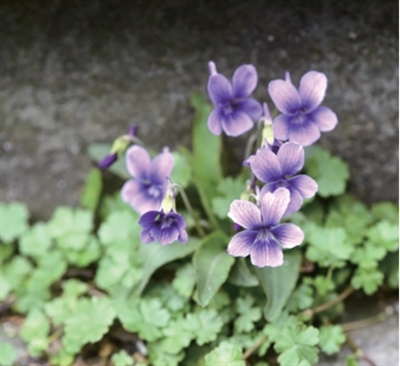 紫花地丁戴着紫色的帷帽,低垂着头,三三两两地避在墙角路边。它们礼数周全,总是把宽敞的地方让给旁边的花儿,自己只拣个僻静角落,安安静静地待着。