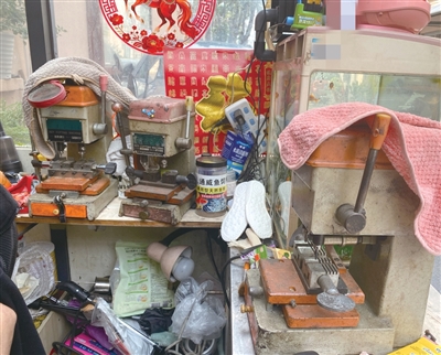 文一路38弄小区旁边是一家大型超市,周边小区有很多大伯、阿姨走进走出,袁师傅的便民摊位很好找,小区走进去的保安亭旁,竖着一块玻璃框架的敞开式摊位,5个平方米左右。