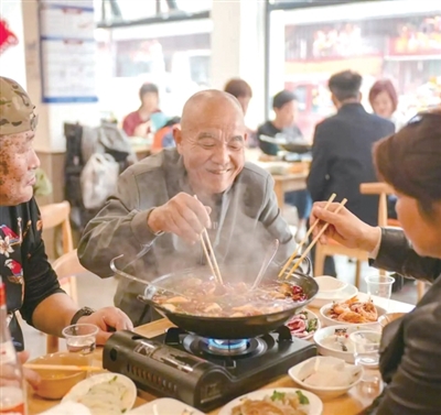 老人在社区食堂吃火锅 湖墅街道供图