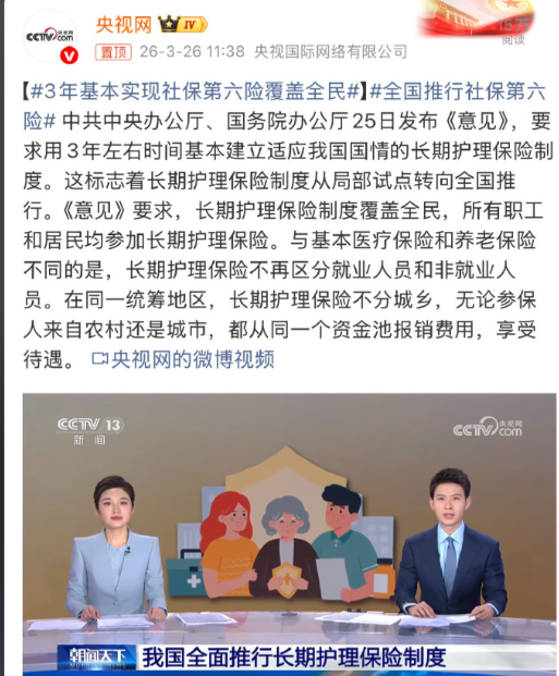 长期护理保险制度是为失能人员的基本生活照料和医疗护理,提供服务或资金保障的社会保险制度,被称为社保“第六险”,所有职工和居民均参加长期护理保险。在同一统筹地区,无论参保人来自农村还是城市,都从同一个资金池报销费用,享受待遇。