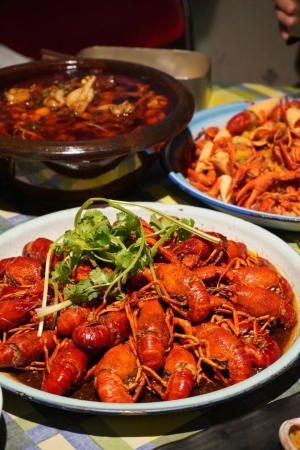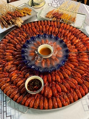 头茬小龙虾受热捧 餐厅推出尝鲜套餐 近年来,有经验的“老饕”可以发现,小龙虾上市日期一再提早,昔日五六月份才正式进入的小龙虾季,如今在三四月就早早拉开序幕。 4月10日晚,记者来到位于北干街道天润中心的一家烧烤店,看到店内的海报均已换成了诱人的龙虾图片,一盘盘色香味俱全的龙虾被端上客桌,店员则热情地向进店顾客推荐新上的小龙虾菜单尝鲜。