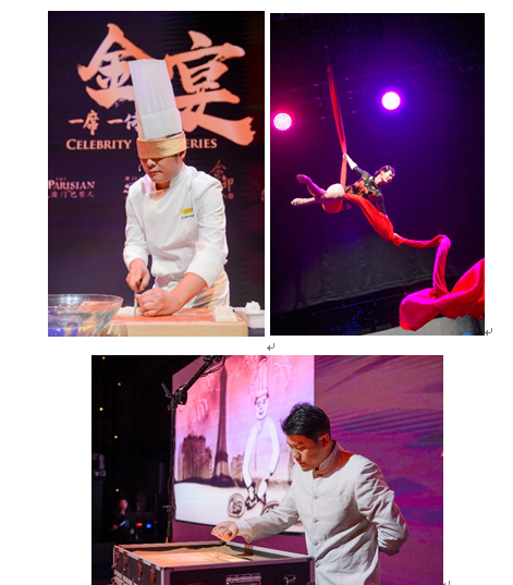 图片说明:晚宴活动亦为宾客准备了一系列娱乐表演,包括其中一位名厨带来的蒙眼切豆腐表演,以及精彩的高空丝绸特技舞蹈和沙画表演。 金沙厨艺 金沙厨艺旨在展现澳门金沙度假区旗下逾150 间不同种类的餐厅,与其质量、食材、厨师、料理创新及环境氛围,让您“享佳肴 品世界”。澳门金沙度假区奉上由厨艺精湛及具创意性的主厨们精心炮制的环球美馔,每间各具特色的餐厅更为食客带来独一无二的餐飨体验。由中式美馔及澳门地道佳肴,以至法国、意大利、日本、印度、东南亚等全球美食,澳门金沙度假区的餐厅都能满足每位宾客的味蕾。 关于澳门金沙度假区 – 金沙中国的综合度假城 金沙中国有限公司是澳门最大规模的综合度假村发展商、业权人及营运商。名为澳门金沙度假区的庞大综合度假城项目坐落于路氹金光大道中心点,提供一站式、包罗万有的精彩体验,亦是一个国际旅客首选的商务及娱乐休闲目的地。澳门金沙度假区全天候提供多姿多采的旅游项目选择,共为旅客提供近12,500间豪华及价格适中的酒店客房及套房等住宿选择。澳门金沙度假区亦同时提供国际巨星现场表演节目、约850间国际品牌的豪华免税购物商店、会议展览场地,以供举行亚洲区内首屈一指的会议展览。此外,海陆空的交通运输配套,以及包括米其林星级餐厅、酒吧及酒廊的超过150个餐饮选择皆汇聚于此。澳门金沙度假区已成为旅客不容错过的目的地,并为大家带来难忘的体验及无可媲美的娱乐享受。 澳门金沙度假区由澳门威尼斯人®、澳门巴黎人、设有澳门四季酒店的澳门百利宫™,以及设有瑞吉酒店、全球最大的康莱德酒店、喜来登大酒店及假日酒店的金沙城中心所组成,是一切皆尽在咫尺的亚洲首选商务及旅游目的地。还有翻新、扩建及重塑金沙城中心为一处新的综合度假村目的地之发展项目- 澳门伦敦人®,将于2020年及2021年分阶段完成。