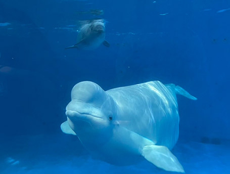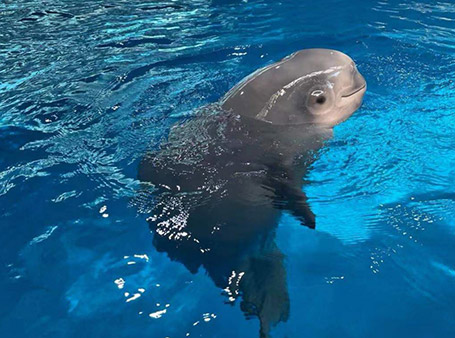 在杭州长乔极地海洋公园内,生活着华东地区数量最庞大的白鲸族群。它们通体透白,且能发出150多种声音,被誉为“海洋金丝雀”。 因为聪明伶俐,加之长相憨萌,白鲸深受游客喜爱。作为首席白鲸“奶爸”,杭州长乔极地海洋公园鲸豚动物专家常昌峰难忘检验结果呈现在他面前时的惊喜。 “国内有过白鲸繁殖的成功案例,但这对于养护团队的技术要求非常高。” 为此,杭州长乔极地海洋公园组织了技术顶尖的“奶爸”团队,定期为白鲸妈妈体检,并记录各项产检指标。得益于专业养护团队的保驾护航,白鲸妈妈在今年7月中旬顺利完成分娩。 “狗刨”仰泳、吐泡泡,小白鲸萌态百出