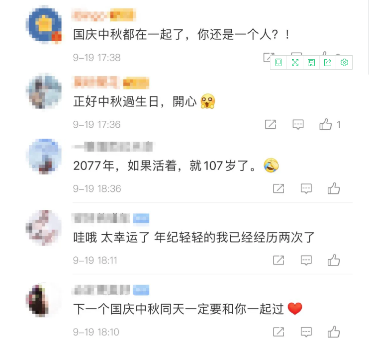 国庆中秋在即, 有一个重要提醒 : 9月27日(周日) 10月10日(周六) 要!上!班! 罕见! 中秋和国庆同一天 21世纪仅出现4次 目前正要经历第2次 中秋节和国庆节将至,巧合的是,两节同时出现在10月1日这一天。天文专家表示,就21世纪而言,这种“巧合”仅出现4次,比较罕见。 中秋节每年固定在农历的八月十五,但它在阳历中的日期却非常不固定,而导致这种变化的原因是“闰月”。 天文教育专家、天津市天文学会理事赵之珩解释说,我国目前同时使用公历(阳历)和夏历(农历)两种历法。在阳历中,地球绕太阳公转一周为1个回归年,平年365天,闰年366天。农历是一种阴阳合历,既考虑到与太阳直接相关的阳历回归年,又考虑到与月亮位相变化的朔望月。1个朔望月平均为29.5306天,积12个朔望月为354天或355天,与回归年相差11天左右,3年累计超过1个月。 为了解决两者之间的矛盾,古人采用“置闰”的方法,即在有的农历年份安排13个月,有两个一样的月份。 庚子鼠年为闰年,增加了一个“闰四月”。受“闰四月”影响,自此以后,庚子鼠年内的农历节日,如中秋节等,在阳历中的对应日期相较去年来说,都将向后推迟18天。 己亥猪年的中秋节对应的阳历日期是2019年9月13日,因此,庚子鼠年的中秋节对应的阳历日期自然就落到2020年10月1日。 赵之珩说,中秋节和国庆节同时出现在10月1日这一天,在21世纪仅发生4次,上一次是2001年,另外两次是2031年和2077年。 网友评论: