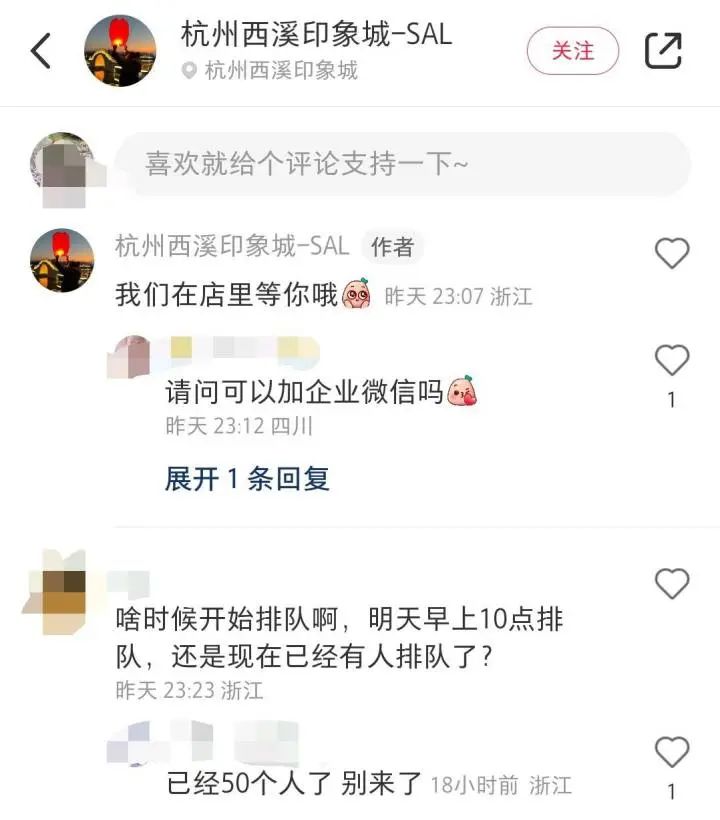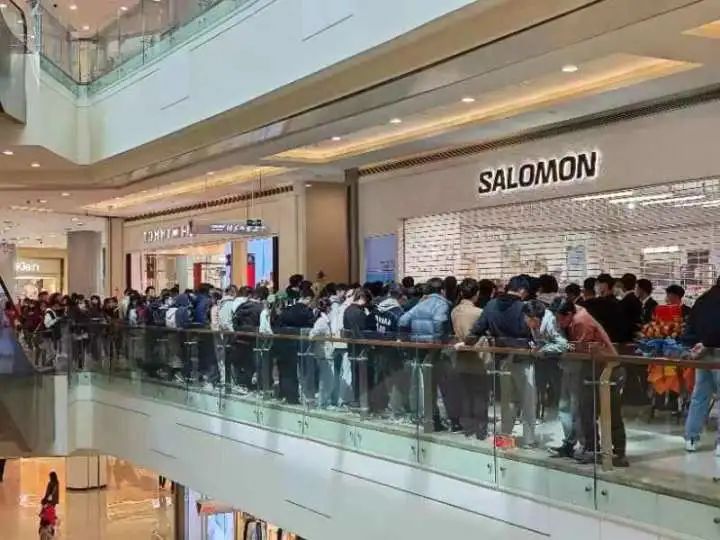队伍里的人群看起来大多数是年轻人,且男生居多。在二楼的店铺门口,还有不少穿着制服的保安小哥,现场维持秩序。 “这是干嘛?今天商场有啥活动?”住在附近的陈阿姨,上午从周边走路运动回来路过商场门口,看到这么多人一脸好奇,队伍里一个戴着电动车头盔的小哥哥应了几句,陈阿姨更想不通了,“耐克阿迪达斯我晓得的,什么‘所罗门’?没听过啊……” 前天晚上就有人赶去排队 杭州目前有4家门店 “这算是品牌的区域首店吧。昨天开业第一天。”西溪印象城的相关工作人员告诉橙柿互动记者,因为是第一天开业,店铺推出新款发售,没想到这么火爆。在小红书上,记者找到了店铺的官方号“杭州西溪印象城-SAL”。前天晚上11点多,还有网友留言问“啥时候开始排队”,有人回复“已经50个人了,别来了。”