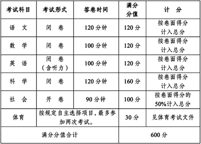 不得将除中考以外的任何成绩与分配生录取挂钩 2024年起浙江中考拟安排表(征求意见稿) 2023年杭州中考安排表 昨天,浙江省教育厅发布了关于浙江中考命题以及招生政策两份征求意见稿——《浙江省教育厅关于实施初中学业水平考试全省统一命题的通知(征求意见稿)》和《浙江省教育厅关于做好优质普通高中分配生招生工作的通知(征求意见稿)》。 两份征求意见稿通知明确,从2024年起,语文、数学、英语、科学、社会等5门学科由省级统一命题,卷面总分为620分;其中,社会学科设置原采用开卷方式的地区2024年、2025年可继续选择开卷(两年过渡期),自2026年起全省统一采取闭卷考试。 2025年起,分配生招生比例不得低于学校总招生计划的70%。分配生录取不得限定录取名次,原则上不得划定录取基准分数线,确保分配到校的名额录取率不低于95%。 2025年分配生比例不低于70% 优质普通高中分配生招生计划应以初中学校毕业生人数为主要依据均衡分配,实行分校分配。各优质普通高中分配生招生比例不得低于学校总招生计划的60%。2025年起,分配生招生比例不得低于学校总招生计划的70%。不得以任何名义占用分配生招生名额。 分配生录取工作须在初中学业水平考试成绩发布后进行,主要依据中考成绩进行录取。不得将除中考以外的任何考试成绩,以及任何竞赛成绩与分配生录取直接或间接挂钩。 分配生录取不得限定录取名次,原则上不得划定录取基准分数线;如因辖区内初中学校发展不平衡,且有多所普通高中而确需划定基准分数线的,应由设区市教育局在设区市范围内统一划定;并确保分配到校的名额录取率不低于95%。 参与分配生的学生须具有浙江省学籍,且在同一初中学校具有完整3年学籍并实际就读的应届毕业生,中途转学的学生不得参与分配生招生(对于原先无此规定的地区,则从2023年秋季学期起,转学的学生不得参与分配生招生;各校要做好转学前的政策解释说明工作)。各地各校不得以非当地户籍为由限制学生参与分配生招生。 2024年起中考全省统一命题 浙江中考语文、数学、英语、科学、社会和体育与健康等6门学科为全省统一考试科目,成绩计入高中阶段学校招生录取总分。 从2024年起,语文、数学、英语、科学、社会5门学科由省级统一命题。五科卷面总分为620分。 英语学科卷面分值为120分,其中笔试100分,听力20分。英语听力部分可以用人机对话替代,分值20分,由设区市教育局自行选定,并自行组织命题。选择人机对话的地区,英语笔试考试时间为85分钟,为16:10-17:35。 “体育与健康”的考试方式、项目和标准等由各设区市教育局制定,考试时间不迟于5月底,分值在30—50分之间。 艺术、劳动学科暂不列入全省统一考试科目,可以按等级制列入考核,具体由各设区市自主实施。 综合素质评价是高中段学校招生录取的重要参考,是否赋分计入录取总分由各设区市自主决定。 此外,中考时间为每年6月第3周的星期六和星期日。 杭州中考社会学科 或从2026年闭卷 对于杭州的学生而言,变化最大的是社会学科——2026年起,全省统一采取闭卷考试,分值为100分。 今年,杭州中考满分是600分,体育满分是30分,其他五门学科总分是570分。五门学科中,社会是开卷考,满分是100分,但按卷面得分的50%计入总分。也就是说,社会学科的分值将增加50分。 不过,征求意见稿中提到,“社会”学科考试方式设置过渡期,另出开卷考试试卷,由省级统一命题,分值100分。原采用开卷方式的地区2024年、2025年可继续选择开卷。 也就是说,对于杭城下半年新初三、新初二的学生而言,他们中考时,社会科目仍旧是开卷考,但分值从原先的50分增加到了100分,卷子由省级统一命题。 ■热点解答 《浙江省教育厅关于实施初中学业水平考试全省统一命题的通知》意见征集稿受到社会各界的关注,浙江省教育厅也对此进行了进一步的解读。 问:为什么要提高社会分值,统一采用闭卷的考试形式? 答:主要是落实立德树人根本任务。注重加强对学生理想信念、爱国主义、品德修养、知识见识、奋斗精神、综合素质等方面的考查,积极培育和践行社会主义核心价值观,弘扬中华优秀传统文化、革命文化和社会主义先进文化,引导学生树立正确的国家观、民族观、历史观、文化观和宗教观,促进学生德智体美劳全面发展。 问:此次全省中考统一命题的依据是什么? 答:依据课程标准科学命题。取消初中学业水平考试大纲或考试说明,严格依据义务教育课程标准命题,不得超标命题和随意扩大、压减考试内容范围,严禁将高中课程内容、学科竞赛试题以及校外培训内容作为考试内容。确保依标命题、教考衔接,促进学生认真学好每门课程,完成国家规定的义务教育学业。 发挥引导教育教学作用。命题要注重引导学校落实德智体美劳全面培养的教育体系,引导教师积极探索基于情境、问题导向、深度思维、高度参与的教育教学模式,引导学生自主合作、探究学习,充分发挥考试对推动教育教学改革、提高学生综合素质、促进学生全面健康成长的重要导向作用。 提升试题科学化水平。科学合理设置试卷难度,既要注重考查基础知识、基本技能,还要注重考查思维过程、创新意识和分析问题、解决问题的能力。结合不同学科特点,合理设置试题结构,减少机械记忆试题和客观性试题比例,提高探究性、开放性、综