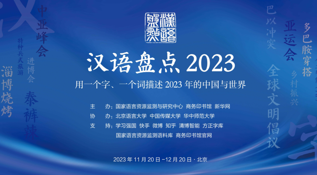 11月20日,由国家语言资源监测与研究中心、商务印书馆、新华网联合主办的“汉语盘点2023”启动仪式在京举行。活动分启动、票选和发布三个阶段:即日起至12月3日,网友可通过新华网PC端、客户端专题页面推荐字词;12月3日至8日,专家评委将联合评选各组前5位字、词并撰写专家解读;12月9日至19日,网友可通过活动专题页面在线投票,选出各组首位字、词。活动期间,年度“十大流行语”“十大网络用语”“十大新词语”也将陆续发布。12月20日,“汉语盘点2023”将揭晓“年度字词”。 启动仪式上,主办方推出“专家版本”和“大数据版本”的年度推荐字词,推荐国内字“新”“复”“合”“兴”“路”“智”等,国际字“战”“乱”“变”“债”“危”“冲”等,国内词“一带一路”“全球文明倡议”“亚运会”“绿色发展”等,国际词“巴以冲突”“ChatGPT”“大模型”“中美关系”等。 |
