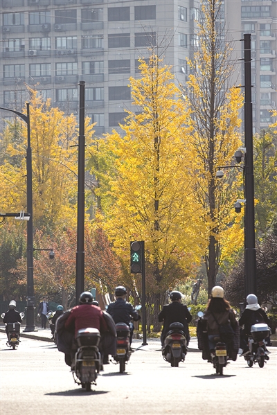 银杏为什么会变金黄? 因为它含有较多类胡萝卜素 银杏的“黄金甲”是很多人爱它的原因。那它为什么会变黄色?主要是受天气影响。 在植物叶子中,不只有叶绿素一种,还含有花青素、类胡萝卜素等色素。其中,类胡萝卜素就可以使叶子呈黄色。相比其他树叶,银杏树叶含有较多的类胡萝卜素。随着天气变冷,银杏树的根部逐渐进入休眠状态,向上输送水和营养的速度开始变慢直到停滞。 最初,叶子呈现出绿色的状态是因其叶绿素含量丰富,随着养分水分的流失和叶绿素含量逐渐降低,叶子就呈现出叶黄素的颜色,也就是黄色。 一般冷空气来得越早,气温降得比往年同期越低,银杏树叶的变色期就越早,反之就会延迟。杭州市园林文物局专家说,今年银杏叶变黄的时间与往年相近,最佳观赏期也差不多,将会一直持续到12月上旬。 |
